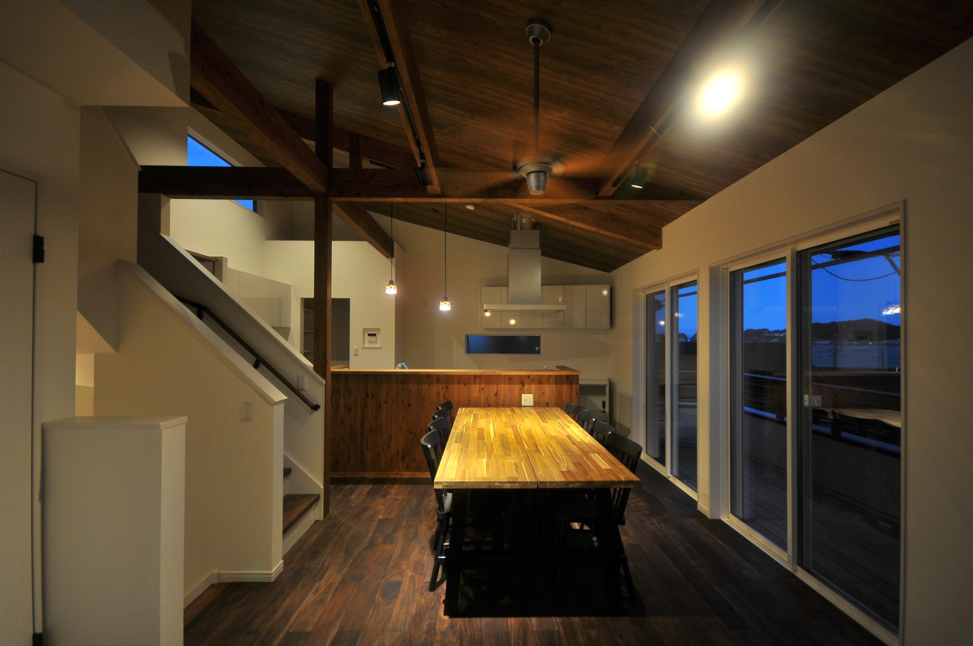 勾配天井には、開放感があったり照明によってデザイン性を上げる事もできたりと、メリットが沢山ありますが、通常よりも天井が高くなることから、メンテナンス費用が高くなったり・照明選びも重要になってきます。
