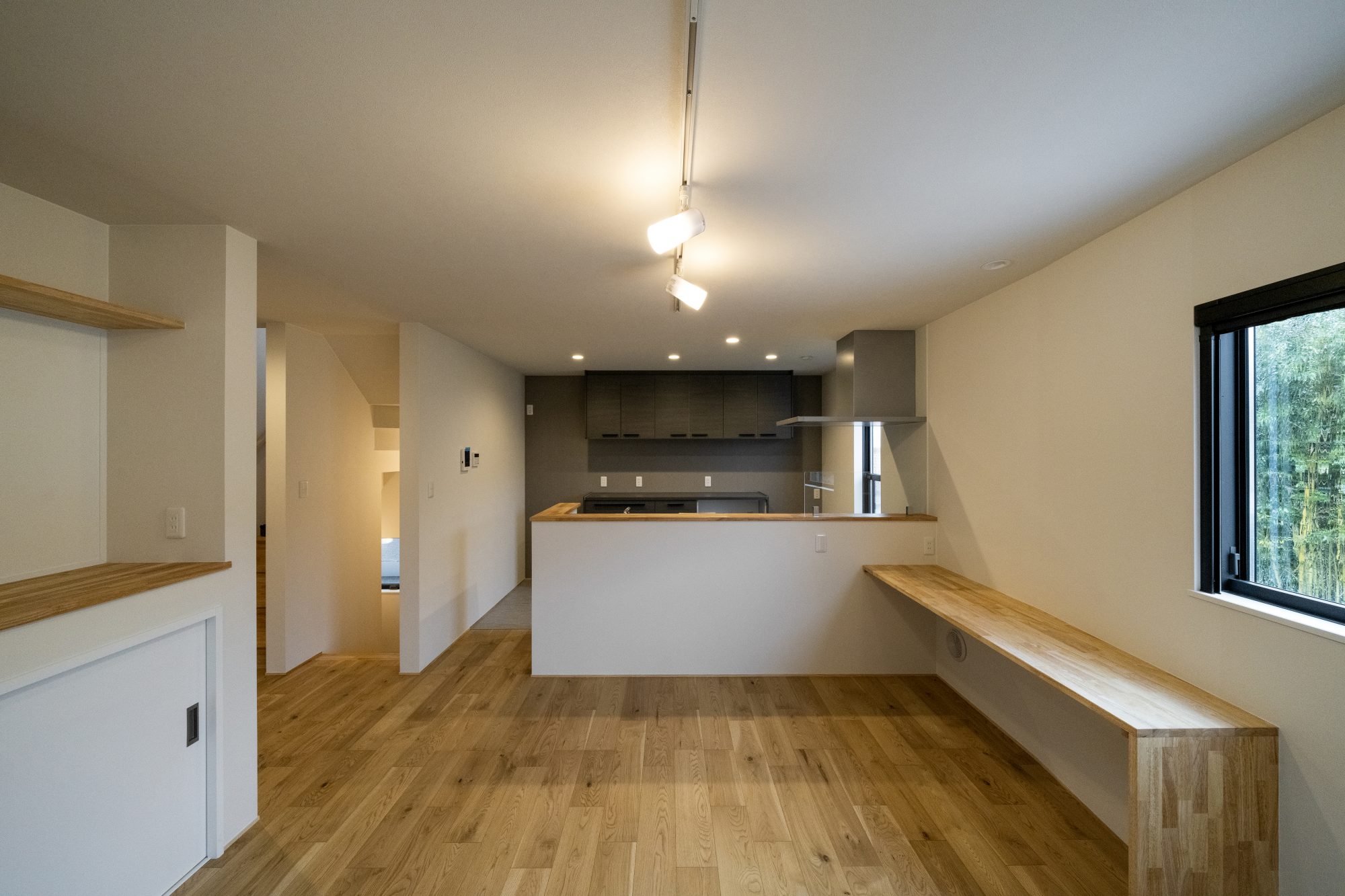また、キッチン前にカウンターを作ることでキッチンに立ちながら宿題の質問に