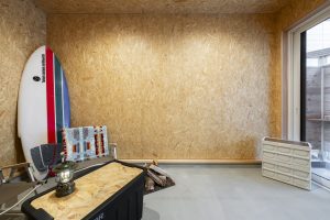 ☝玄関横に設置された、広々ストレージルームで趣味を楽しむ暮らしを