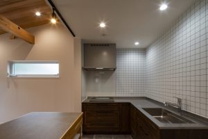 こちらの家は、その壁を使いキッチン横に家事室を設置しています。