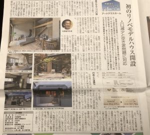住宅リフォーム市場唯一の経営専門誌である、リフォーム産業新聞に弊社のリノベモデルハウス『片吹丘陵の家』が掲載されました!