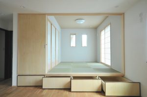 収納が確保できる以外のメリットとしては、立体的な空間があることでお部屋にメリハリが出来たり、畳や絨毯・フローリングとどんなテイストのお家にも合うことから、