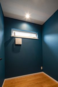 床の色・家具の色もお部屋を構成する重要な要素ですが、白以外のアクセントクロスを採用し楽しみながら家づくりを考えるのも幸せですね。