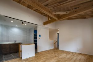 今回のお家は、角地のためお家の形はシンプルに。その代わり、お家の中はふんだんにアクセントクロスを採用しています。
