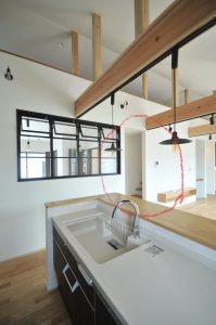こちらのお家はキッチン横のストリップ階段。
