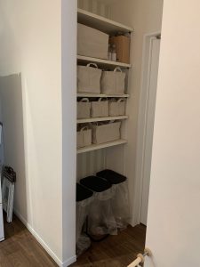 また、写真の様にベビーゲートを取り付けておけば、ママも安心してパントリーに収納が可能になりますね。