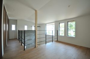 冬の日射取得と夏の日射遮蔽を考えた設計で、冬場の下の暖気が吹き抜けがあることで2階に上がってきて、2階にいる際にも程よく各部屋に暖気が回っていて快適な空間を保っています。