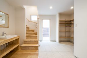 玄関だけでも約3帖あり、造作洗面手洗いを設置しているのもポイントになっています。
