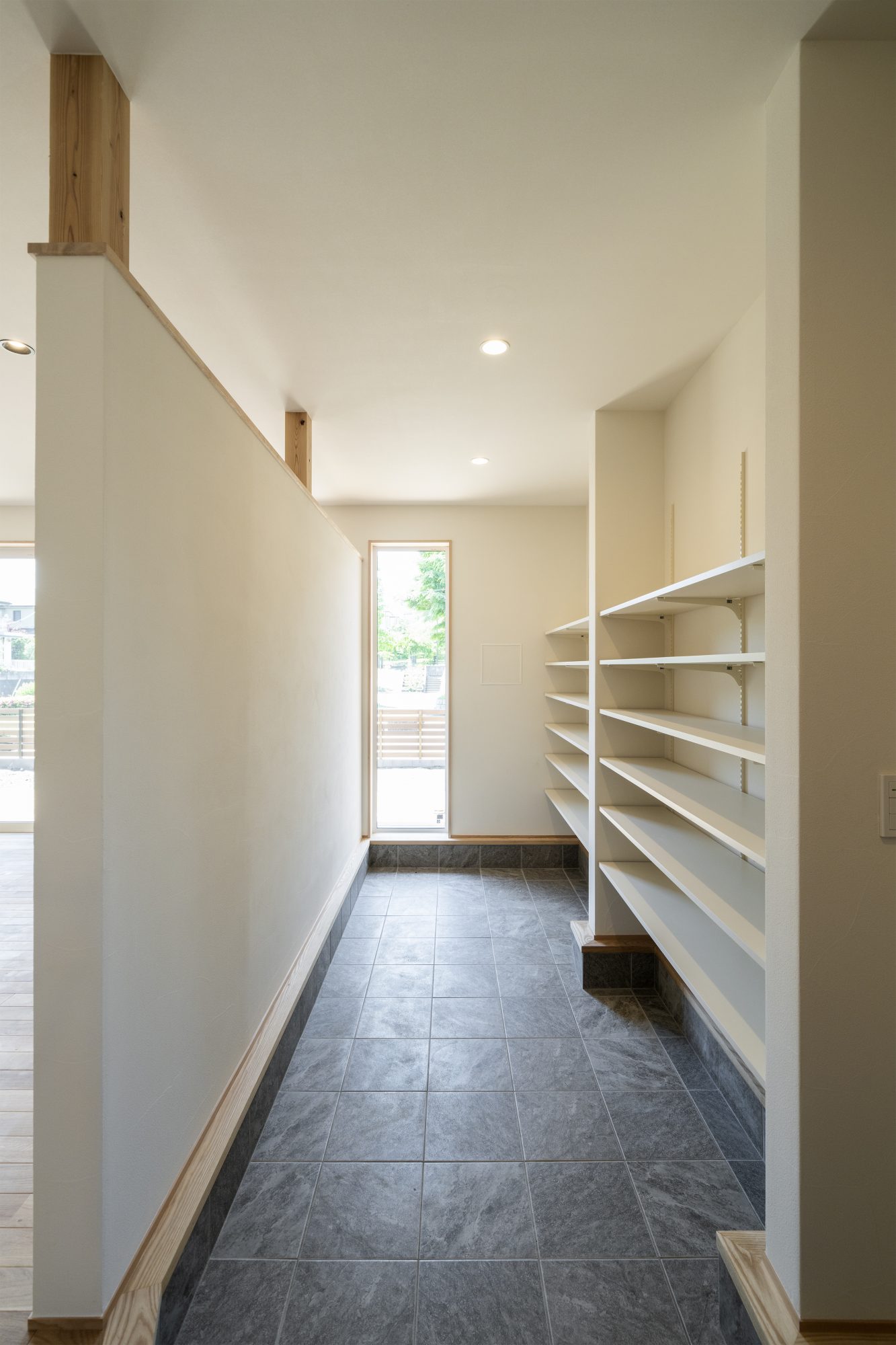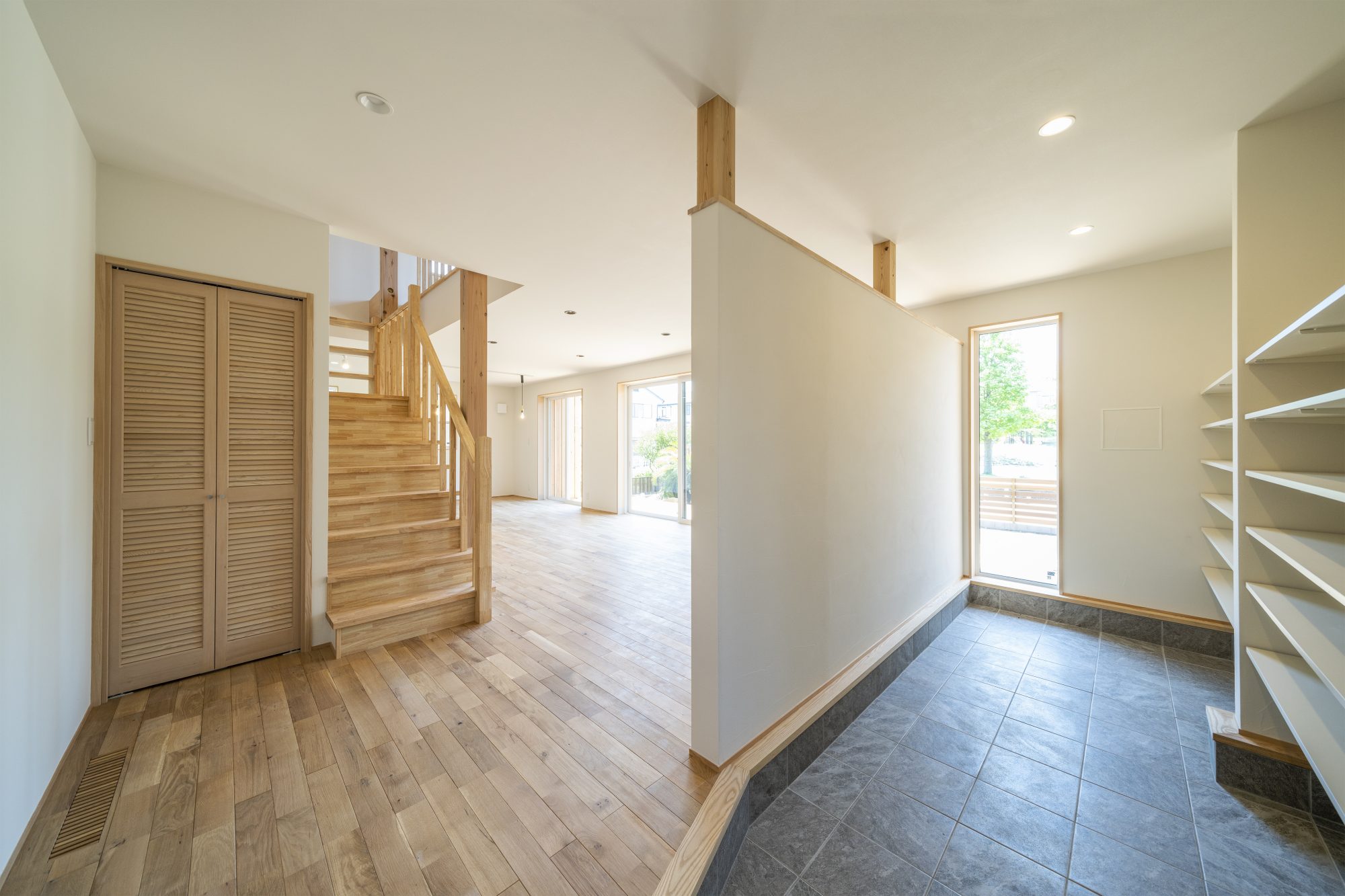 天井が2,700mm・公園のある南面からの自然光で、明るく開放感のある玄関です。