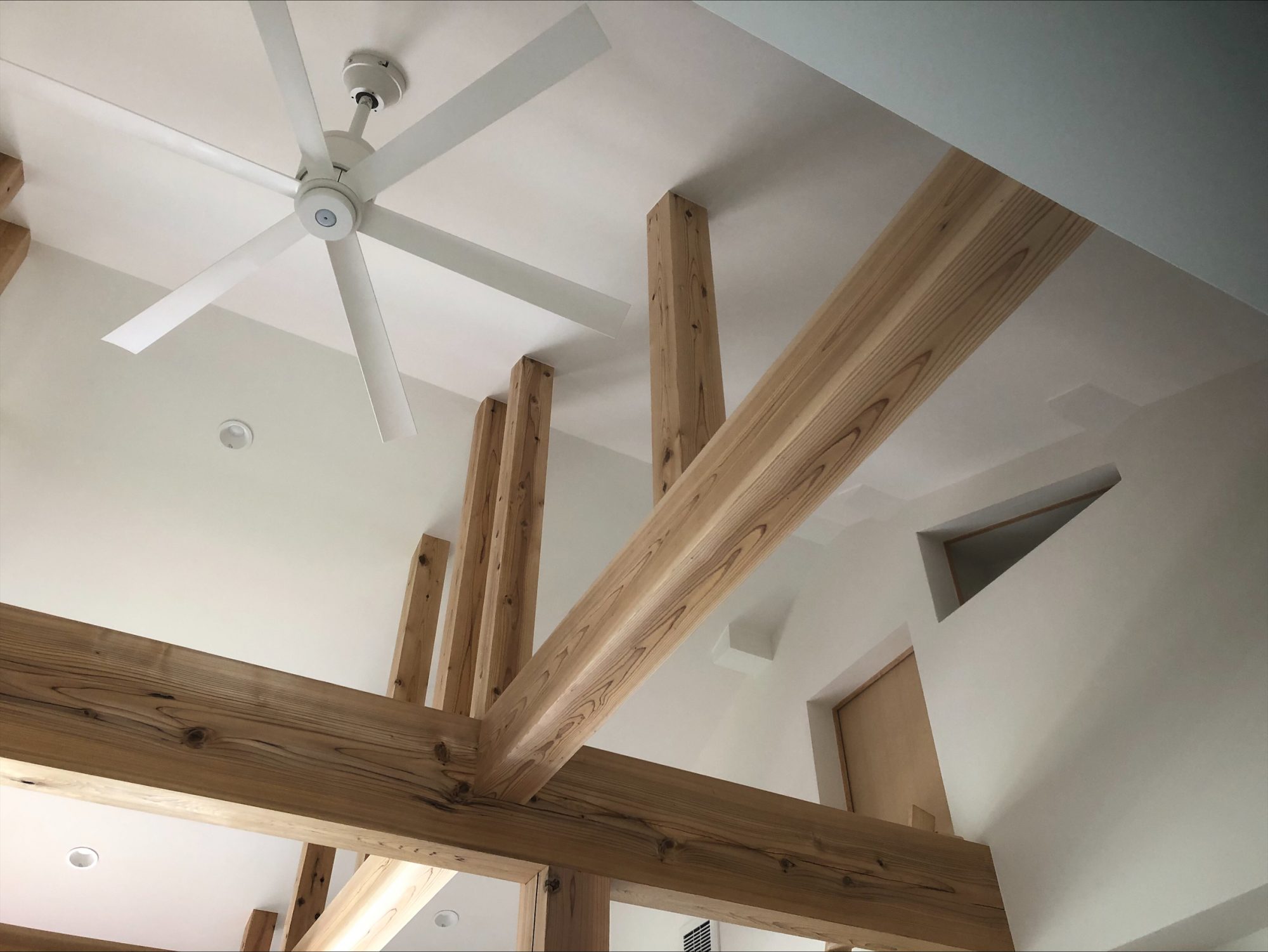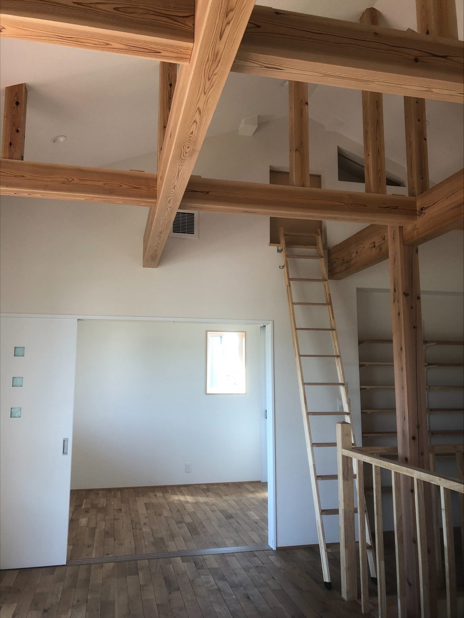 はしご横の三角部分からも冷気が出てきたり、お部屋の天井部分には天井ガラリも設けられているため、エアコン1台でムラのなく過ごしやすい温度が保てます。