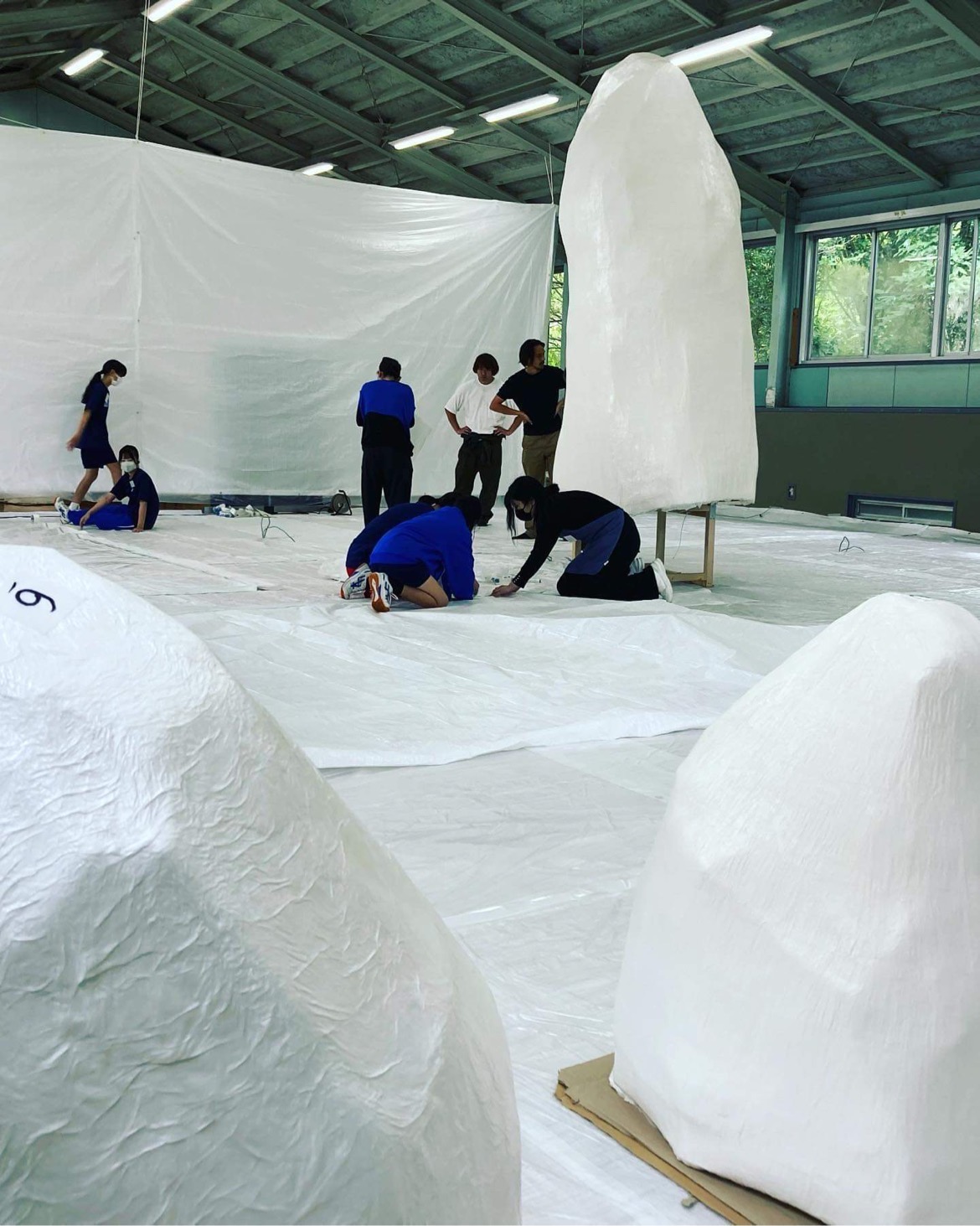 作家が2人で1日18時間4ヵ月かけて作った作品の設営中です。