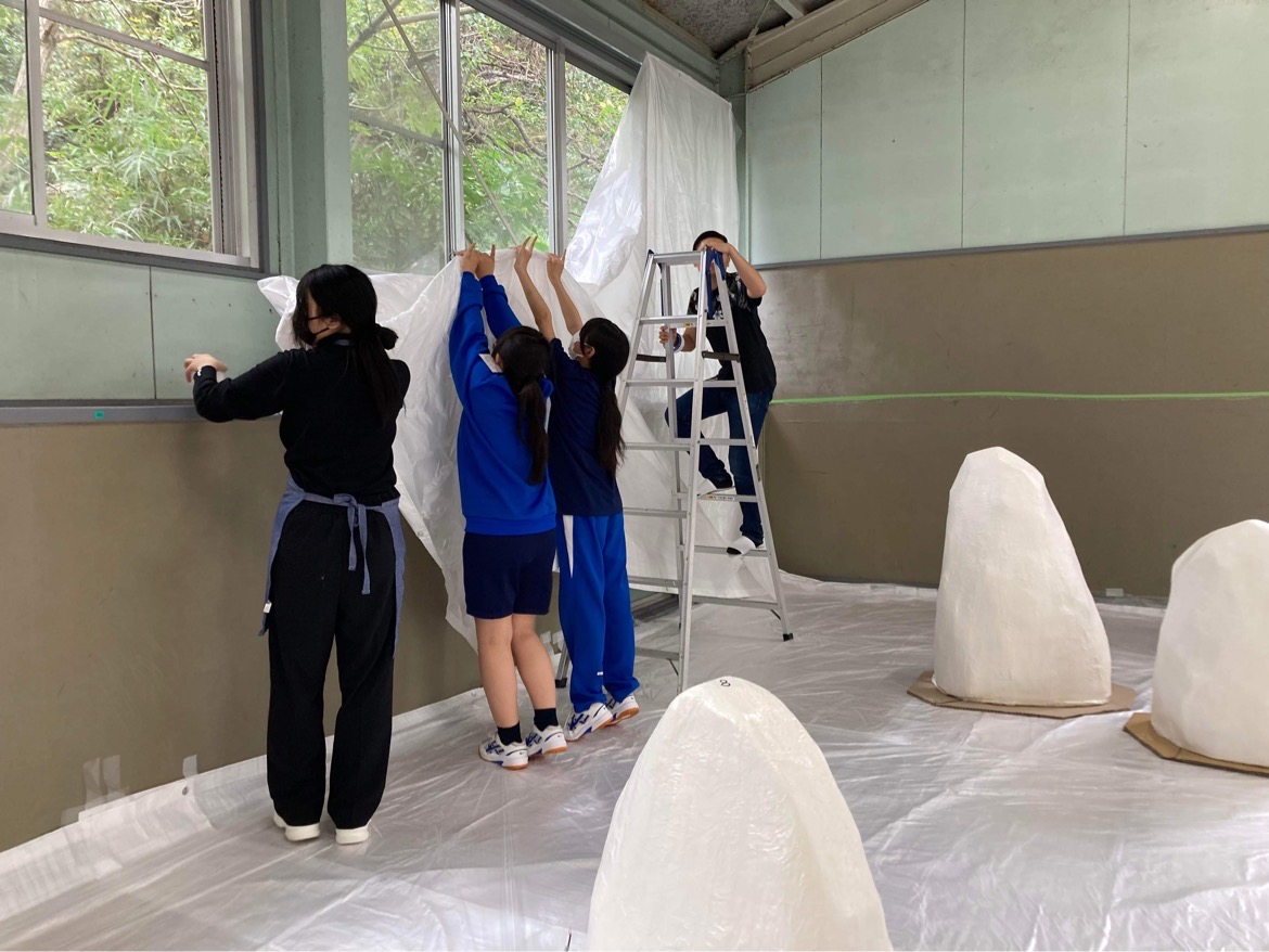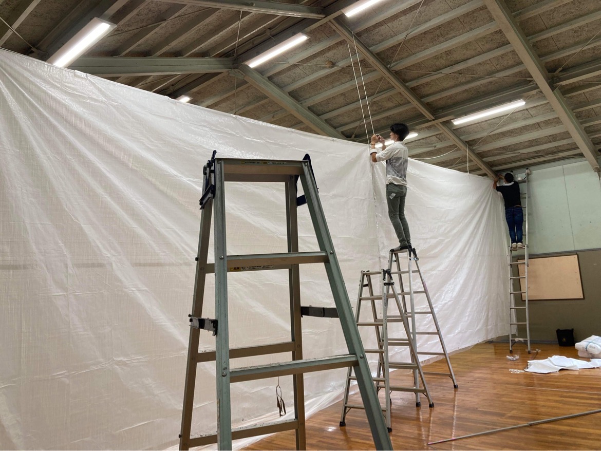 逗子葉山高校、聖和学院中学校美術部の生徒さん、逗子葉山高校の校長先生、ZAFスタッフも設営に参加!