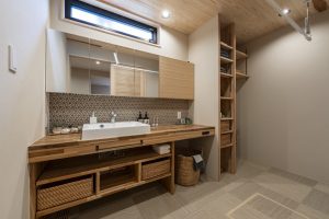 ↑ 同物件の洗面脱衣所。水回りの断熱性能を高めることでヒートショック防止にも繋がります