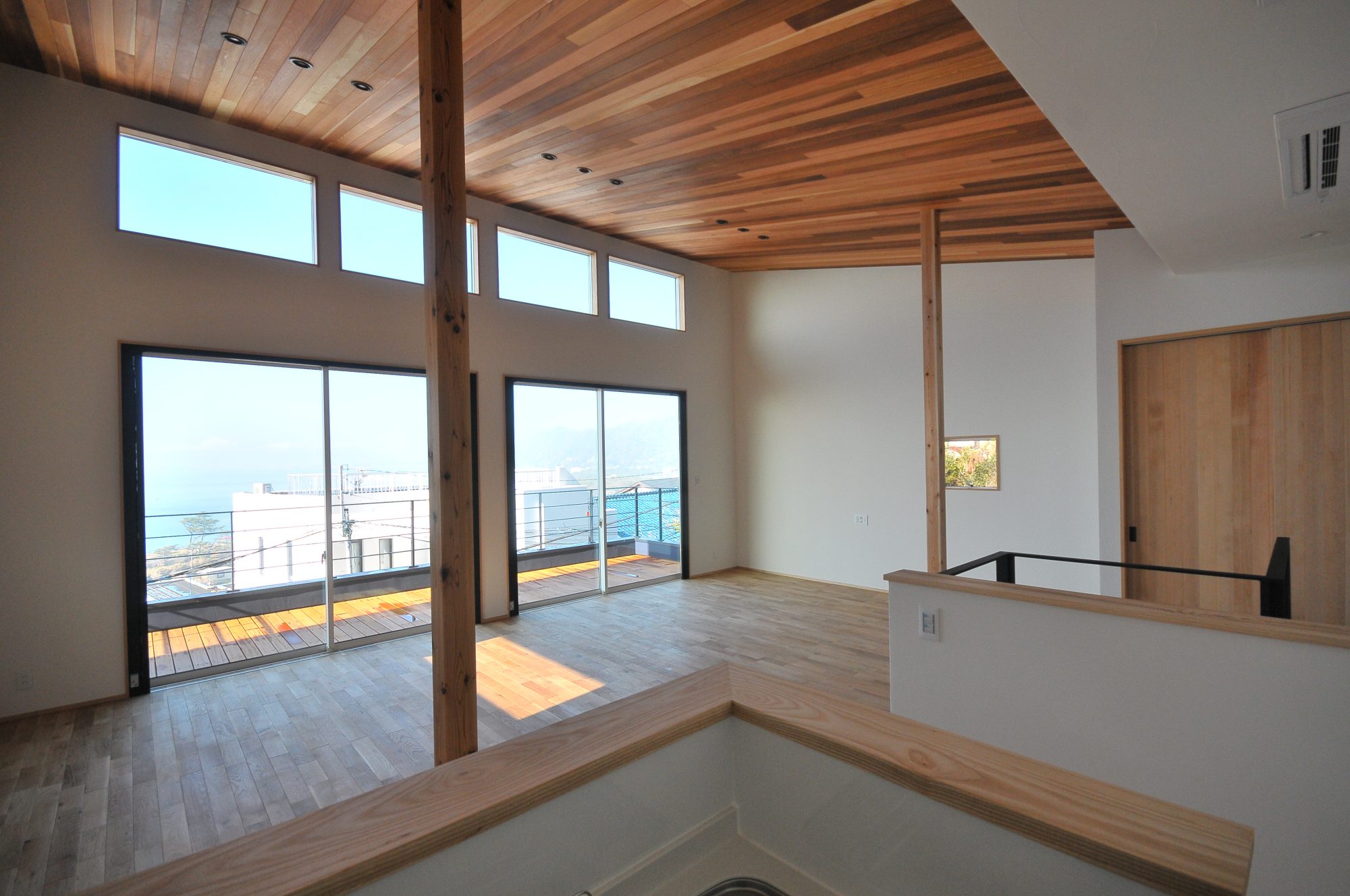 木の温かみのあるリビング空間から、海と空の青が一面に広がります!