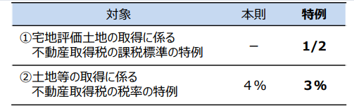 不動産取得税については、土地などの取得にかかる課税標準・税率の軽減措置が2026年3月31日まで延長します。