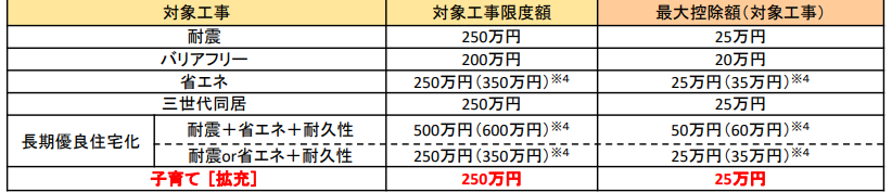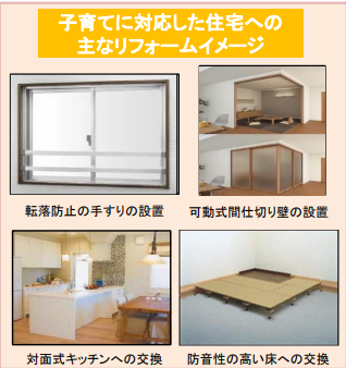 子育て世帯などが子育てに対応した住宅へのリフォームを行う場合に、標準的な工事費用相当額の10%等を所得税から控除されます。