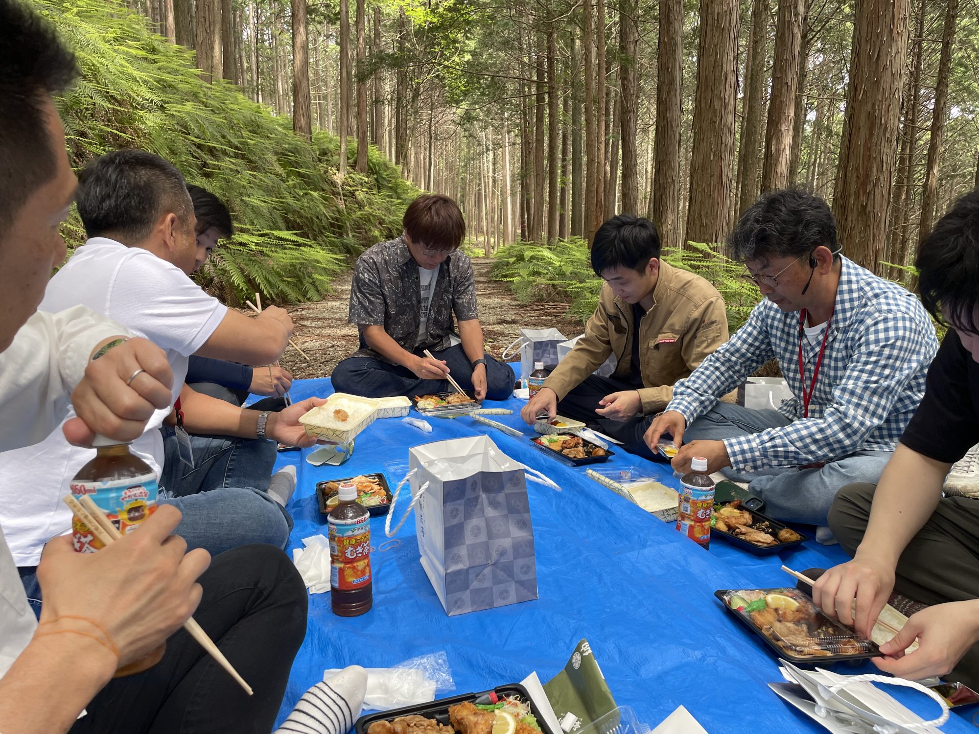 フジイチさんにお昼を用意して頂き、緑に囲まれながらランチ!