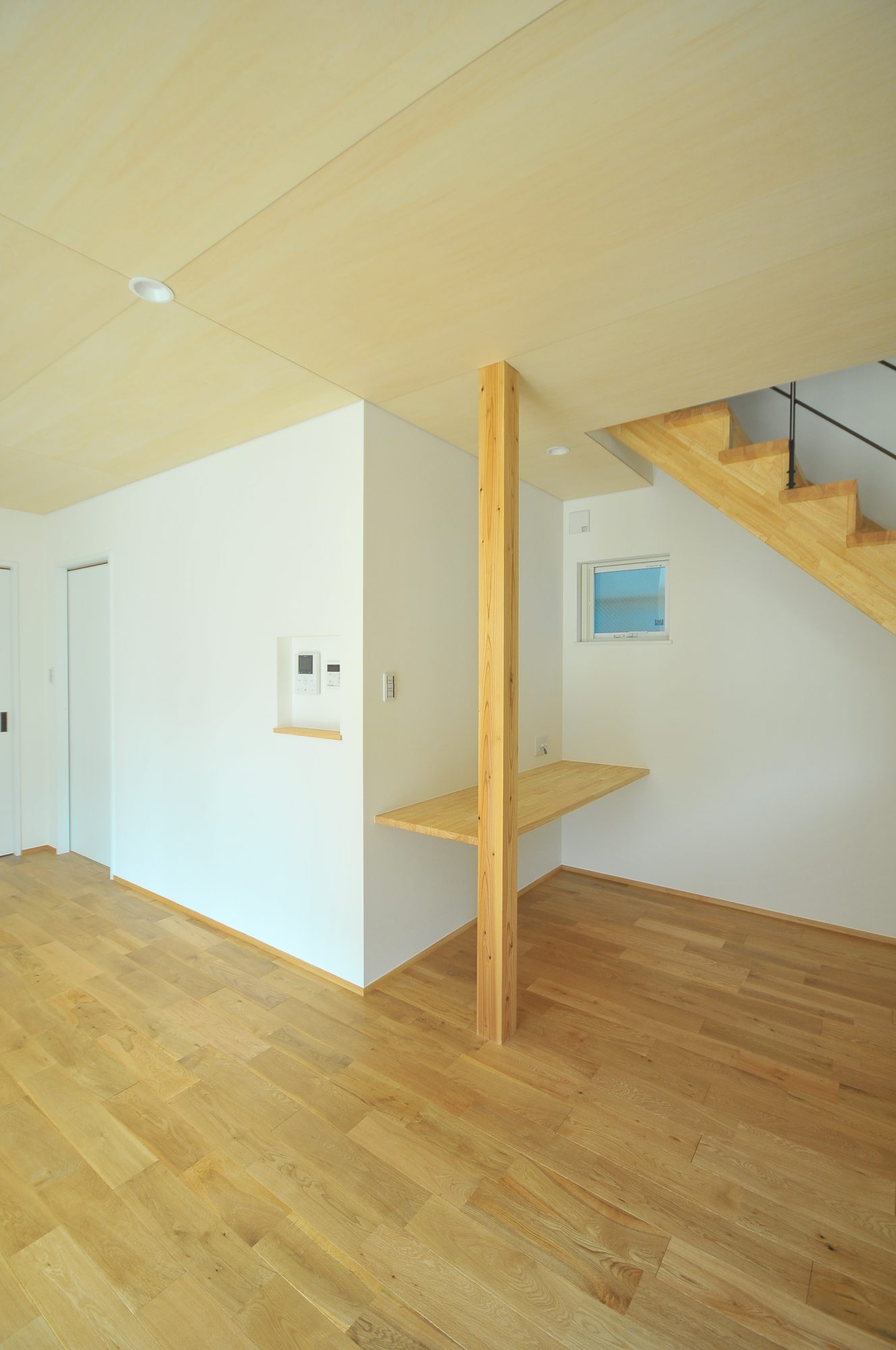 ↑ 階段下スペースにワークスペースを作ることで、キッチンからもお子さまの様子が見れて安心。