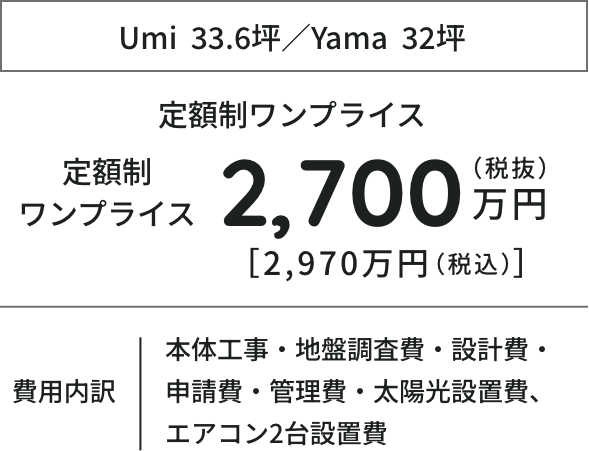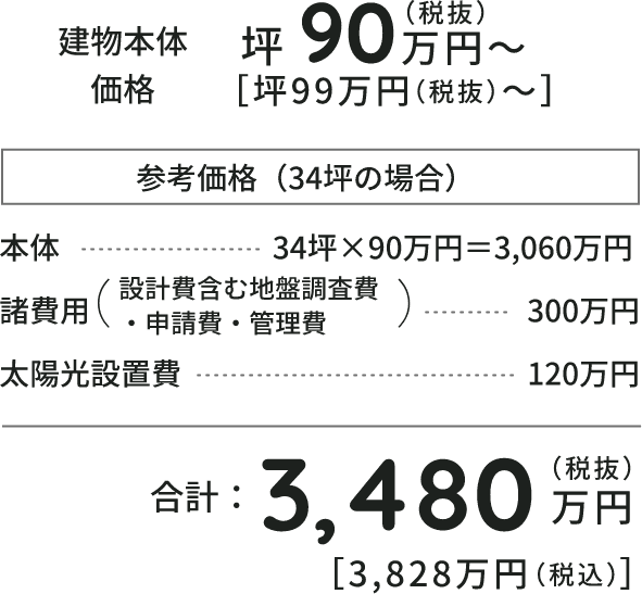※土地状況により別途付帯費用が発生する場合がございます。※オプション選択により金額が加算される場合がございます。※価格は、2023年10月31日からの新価格です。今後の市場変動により価格が変更になる可能性がございます。