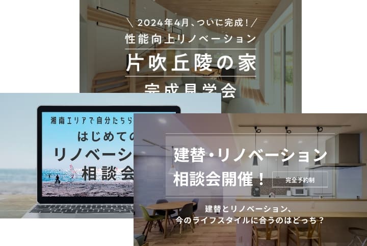 人気の横浜・湘南エリア。土地の価格も高騰するなか、リノベーションなら、選択肢が一気に拡がります。中古物件は、戸建てならコンパクトながらも庭付き、マンションでも80㎡超など、ひと世代前の標準の広さを持つ物件が多いことも魅力。アートテラスホームは、リノベ向きの物件を見極めた提案で、理想的な暮らしをつくりあげることが可能です。