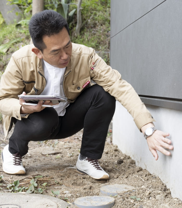 お引渡しから半年、1年、2年、5年、10年目に、建物内部・内部の点検を行います。点検時に実施可能な調整はその場で対応いたします。(※点検箇所は工事内容によります)