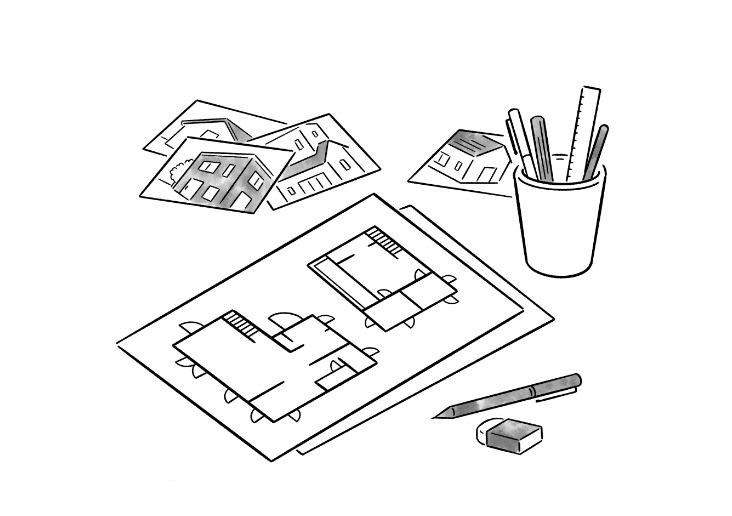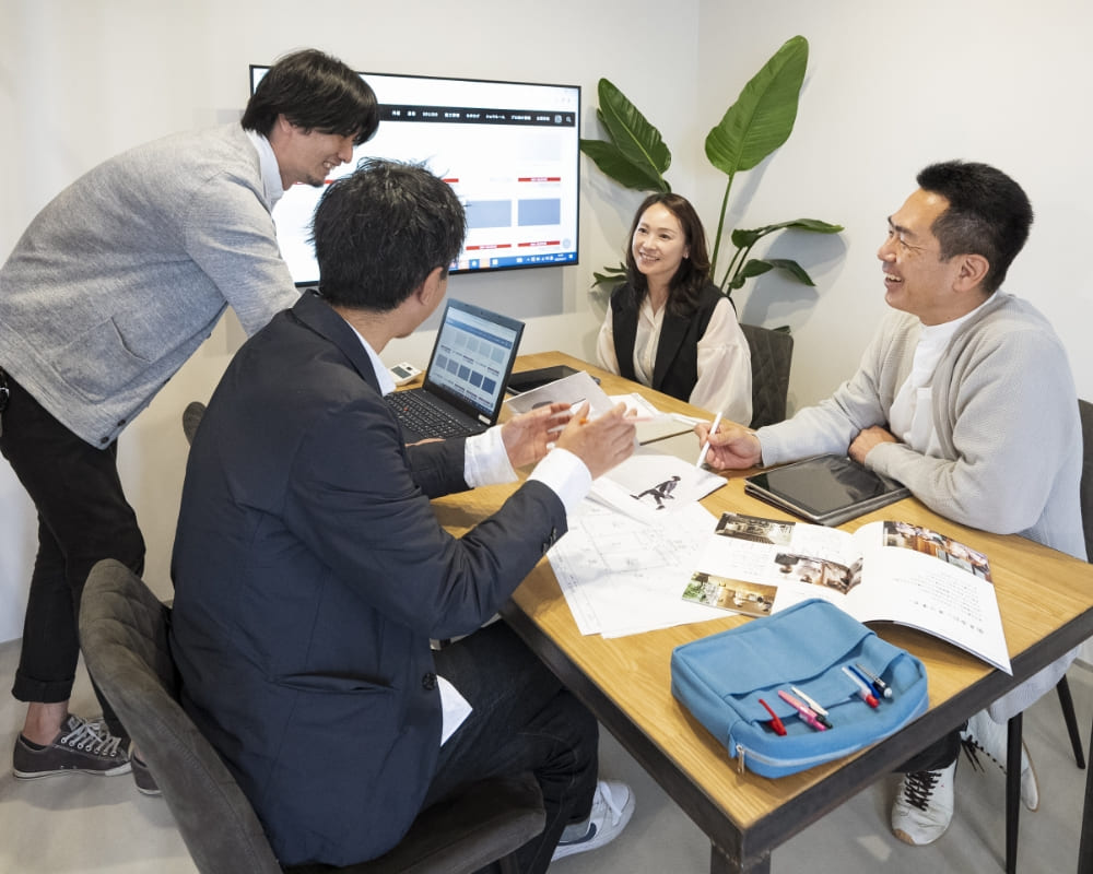 基礎や構造部分を残して解体し、設備はもちろん水廻りの位置の変更なども行うリノベーション。新築注文住宅と同じようなプロセスで新しい暮らしへの理想からヒアリングし、それに合わせた間取りのご提案から行います。