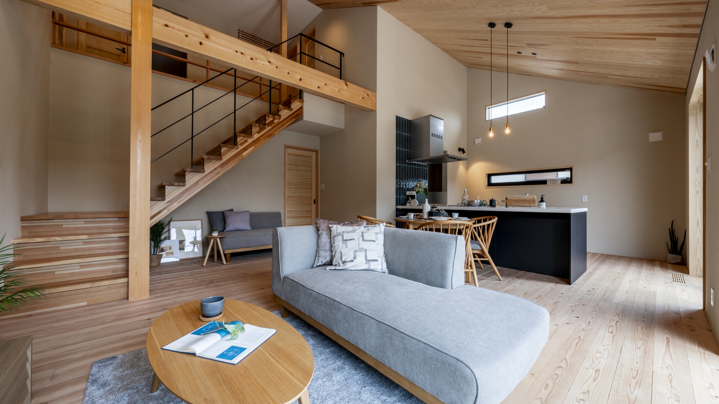 自然素材の中でも、特に“木”の手触り、足触り、醸す匂いや、触れ合った時の微かな音の響き。今そこにある建物だからこそ計算ではなく確認できる陽光の向き、風の通り道。自然素材とパッシブデザインの考え方を取り入れた設計で、一年中、昼も夜も穏やかに豊かに過ごせる空間をつくります。※パッシブデザインについては、建築状況により対応できない場合もあります。